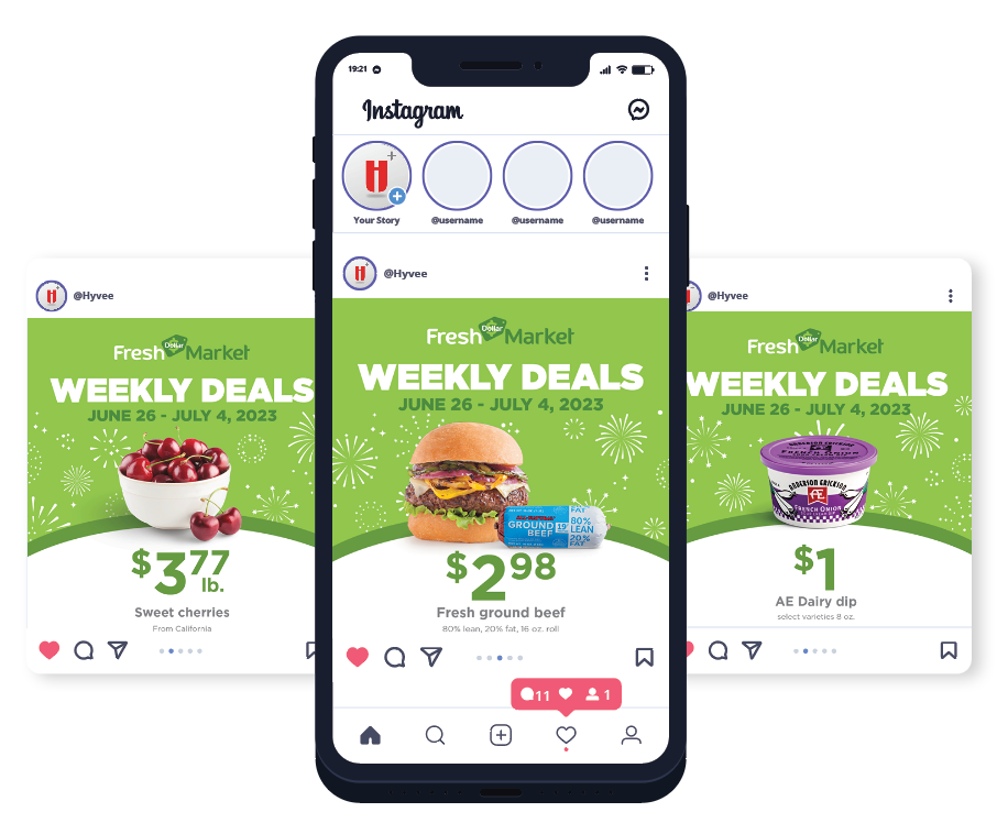 Digital Instagram assets for Dollar Fresh Market weekly deals